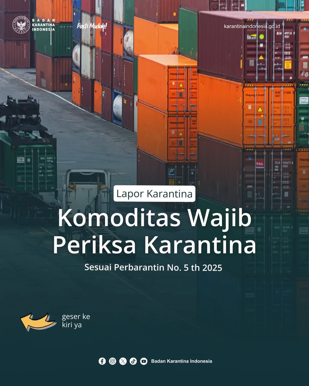 Tentang : Komoditas Wajib Periksa Karantina Sesuai Perbarantin no 5 tahun 2025 , Tayang Pada : 2025-04-29